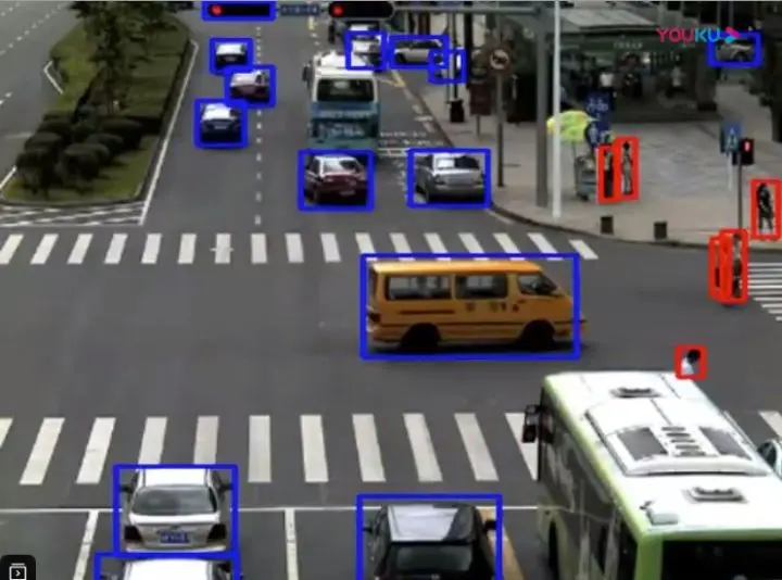 这里是做了人(红色),自行车(绿色)和car(蓝色)类别的绘制矩形框。可自行修改代码,绘制COCO数据集80类矩形框,不过速度会慢哈。