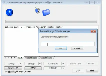 右键菜单--选择同步--选择远端URL--点击推送输入用户名和密码 -