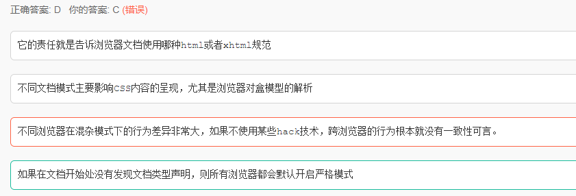 而D Doctype不存在或错误,浏览器默认 混杂模式