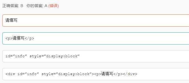 < div id=”info” style=”display:block”>< p> 请填写 </ p></ div>