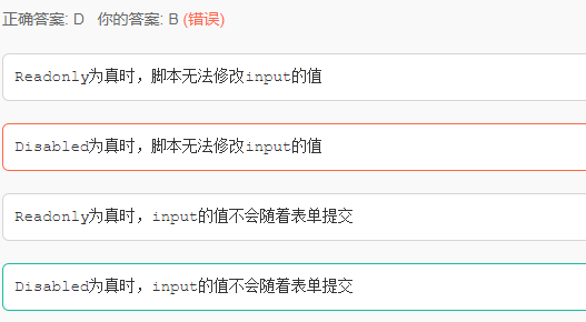 9. 以下对form表单中input元素的readonly与disabled属性描述正确的是?( )