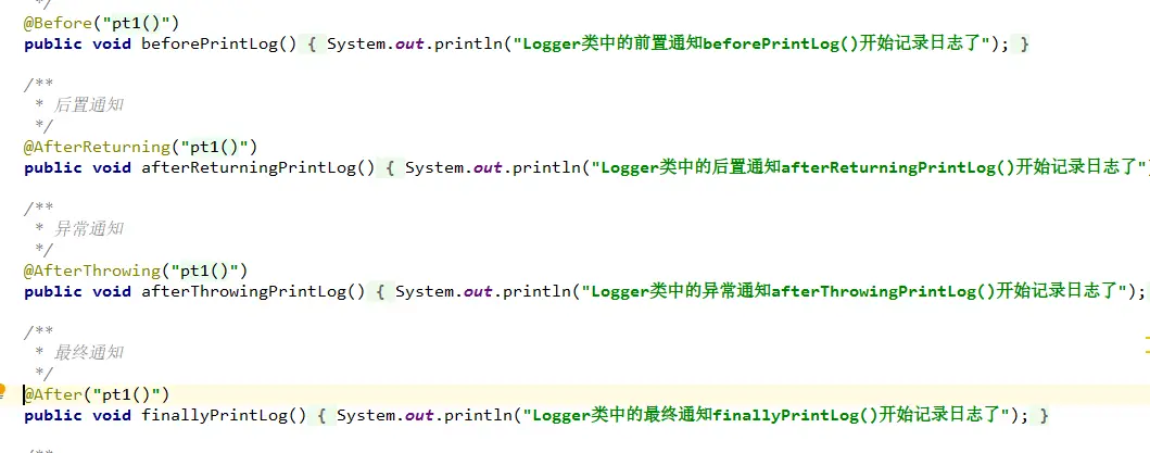 System.out.println("Logger类中的环绕通知aroundPrintLog()开始记录日志了");