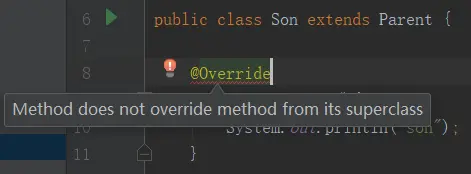 并且,如果我们在子类的 say() 方法中,添加 @Override 注解也是会报错的。