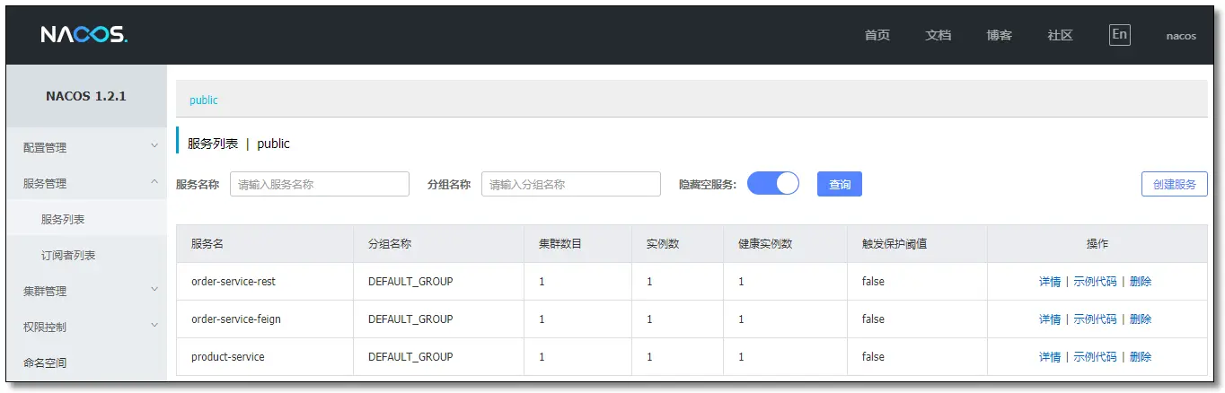 Nacos 注册中心product-service:商品服务,提供了/product/{id}接口order-service-rest:订单服务,基于Ribbon通过RestTemplate调用商品服务order-server-feign:订单服务,基于Feign通过声明式服务调用商品服务