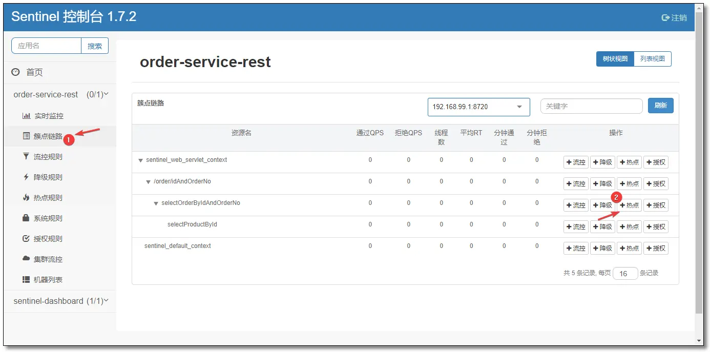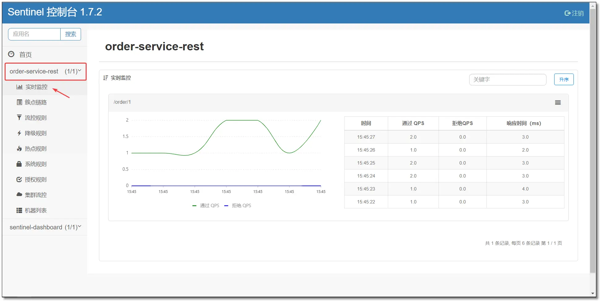 多次访问:http://localhost:9090/order/1 然后查看控制台实时监控结果如下: