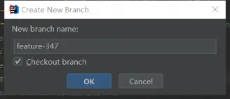 1) 创建功能分支:在工程的develop分支创建名称为feature-347的功能分支,在创建分支前,最好先拉取下最新的代码,因为有可能其他人提交了自测通过的代码。
