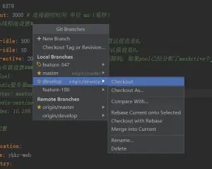 保证当前分支是最新的develop分支,在项目上右击依次选择,git—repository—Branches…