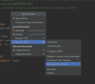选择feature-347分支,进行Merge into Current操作即完成合并到develop操作。