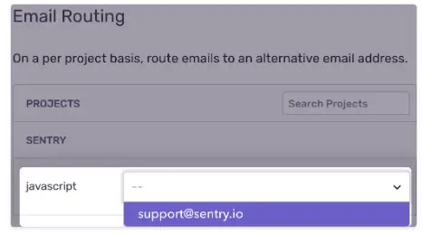 电子邮件通知默认为用于设置Sentry帐户的电子邮件地址。将电子邮件通知路由到其他电子邮件地址,并保持项目通知的组织性。例如,与基础设施相关的项目可以路由到专用于团队基础设施的电子邮件。