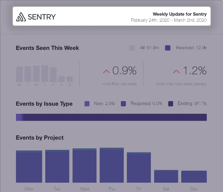 Sentry为每个项目生成报告,并在每周一发送一次。使用下拉选择器微调每个项目的报告。
