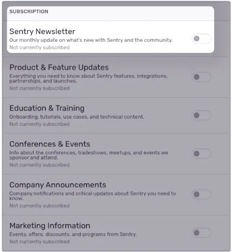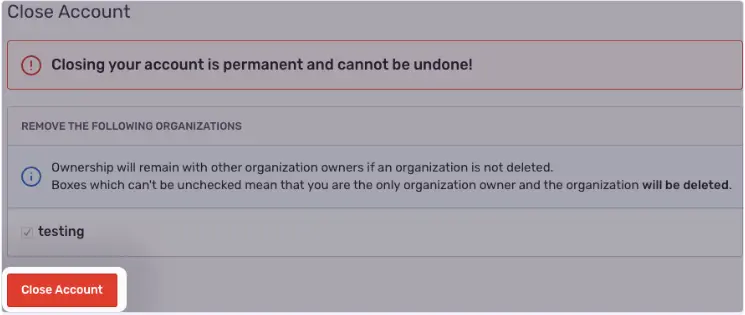 关闭您的sentry帐户会自动删除与您的帐户关联的所有数据。如果您的帐户是某个组织的唯一所有者,则该组织将被删除。拥有多个所有者的组织将保持不变。