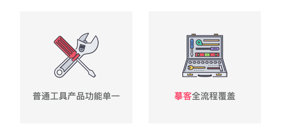 优秀的设计工具可以促使产品设计高效率、高质量地完成,然而碎片化的工具集合会在团队作业中产生巨大的跳转成本和一致性误差,已经远远无法满足团队的需求。作为设计+协作的一站式云平台,无论是与工具类产品相比,还是与平台类产品相比,摹客都拥有自己独特的优势。