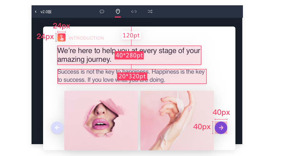 ↑ 设计稿和原型图上传至摹客后,开发可自由查看设计稿中的精准标注和图层标记信息,还能自动生成样式代码,直接复制使用。