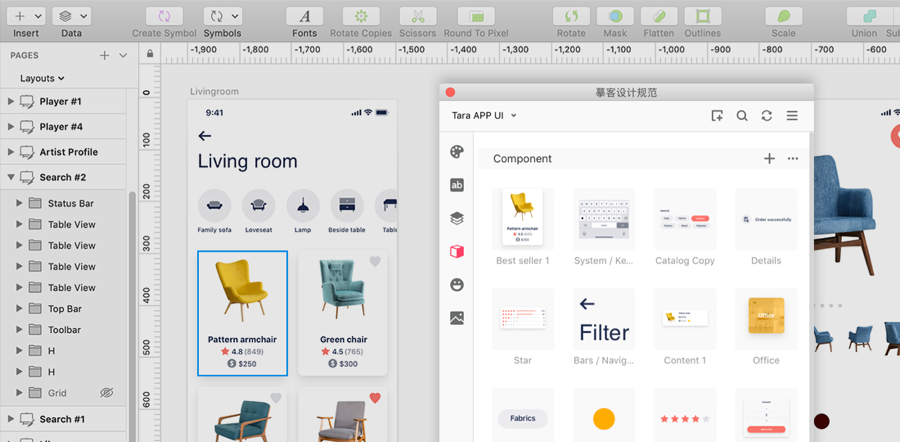 ● 可以使用摹客 Sketch插件快速提取Sketch中的资源,边设计边生成规范,资源库自动同步更新。同时,也支持在Sketch中直接复用摹客规范中的资源。