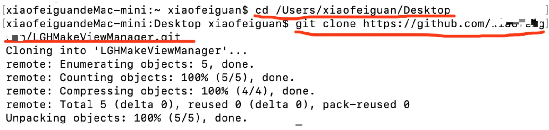 第二步:使用命令将仓库clone到桌面