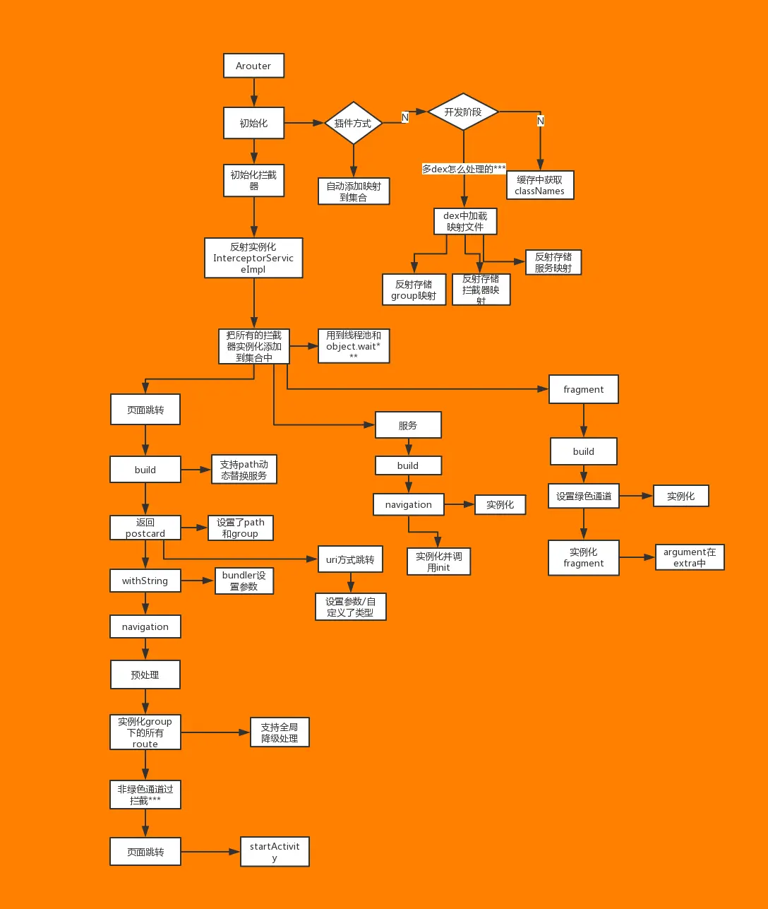 - 10.拦截器怎么实现的?初始化的时机?为什么要在process调用callback.onContinue()。各个拦截器之间的优先级是如何保证的(是在跳转的时候根据priority判断的吗)