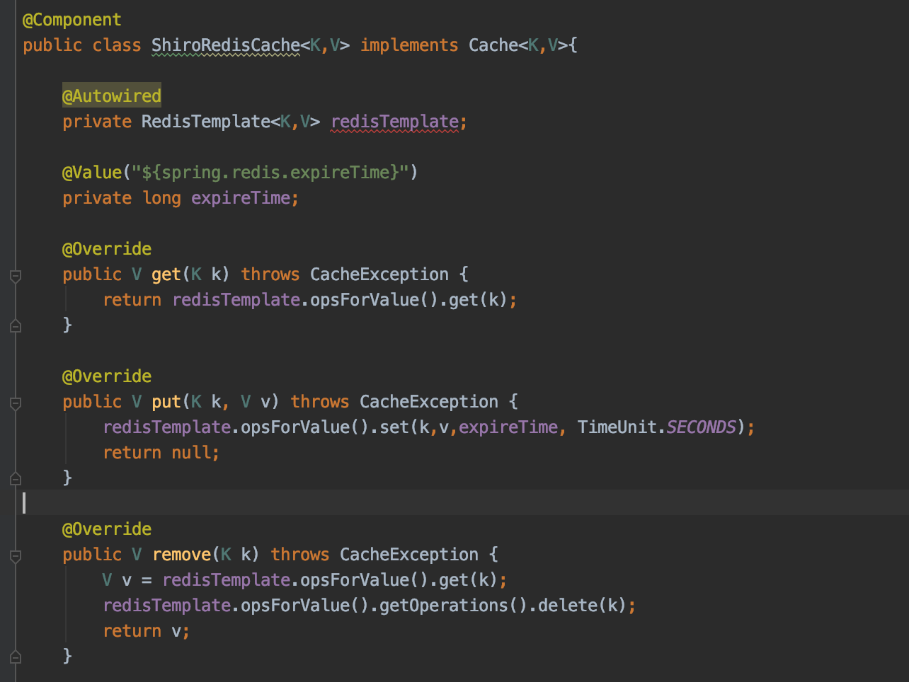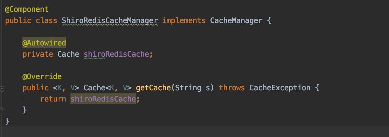 1、继承CacheManager 实现getCache的方法 2、实现Cache接口 实现基于redis的增删改查 3、将 CacheManager 设置到 DefaultWebSecurityManager
