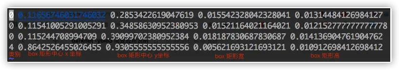 类名 box矩形中心x坐标 box矩形中心y坐标 box矩形宽 box矩形高