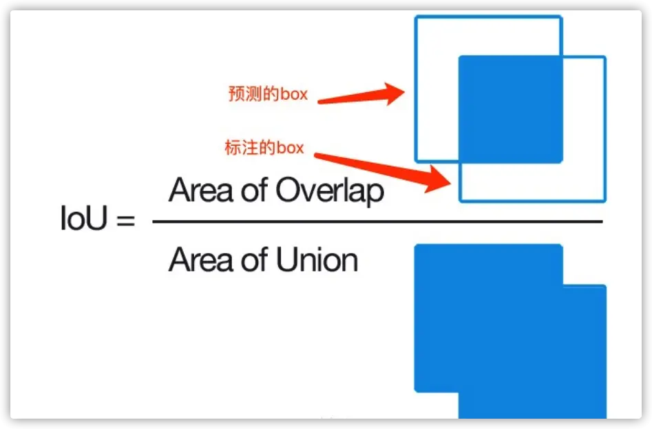 - IOU- [标注的box面积] 和 [训练检测出的box面积] 重合率.