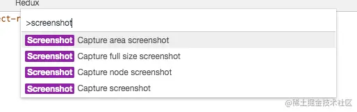 截取特定节点对应上图命令是Screenshot Capture node screenshot, 通过 Screenshot Capture full size screenshot 命令可以截取全屏,不仅仅是可视区。