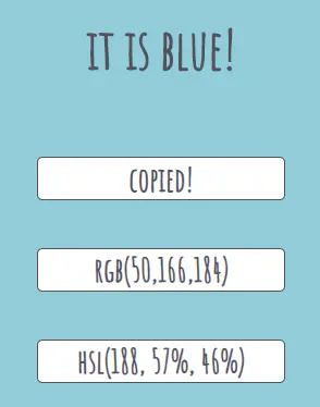 在 Pick Color 里呢,有三个对应的 HEX / RGB / HSL 的按钮,我想实现的是用户点击按钮后,可以获得点击的对应的文本存储在剪切板中,如何这个展示栏会展示两秒的“copied!”字样。