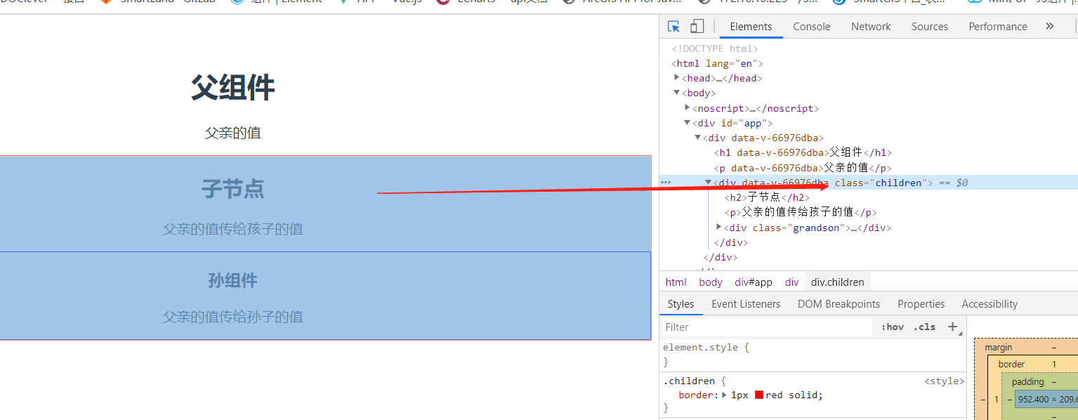在页面中查看,发现子组件已经接收到父组件传入的值