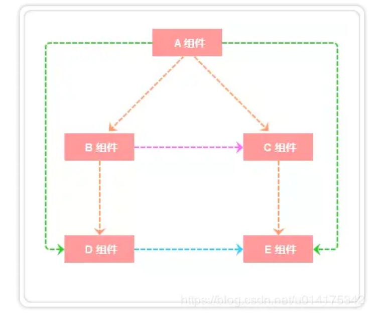 - 非父子: 隔代 A组件 -> C组件;兄弟 B组件 -> C组件等