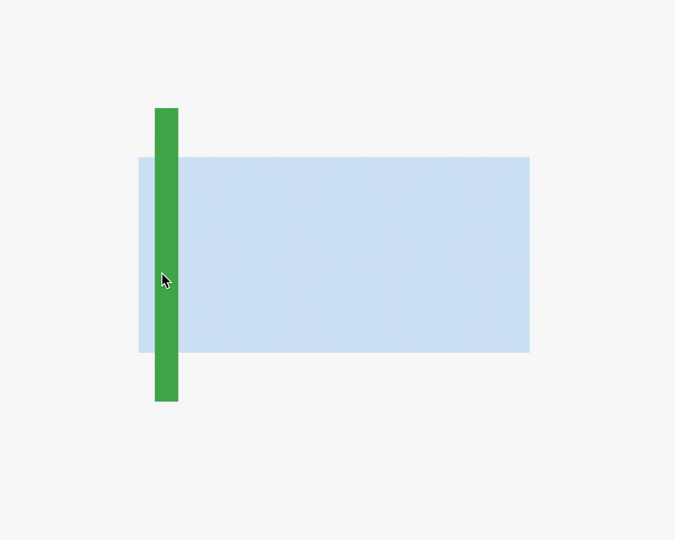 下图Gif中,蓝色的Container不在overlay中,而绿色的在overlay中。蓝色的Container作为CompositedTransformTarget的child节点,绿色的作为CompostedTransformFollower的child节点,他们通过LayerLink实例连接到一起。注意绿色overlay widget是如何知道蓝色widget的bounds数据,因为蓝色widget并不在overlay中: