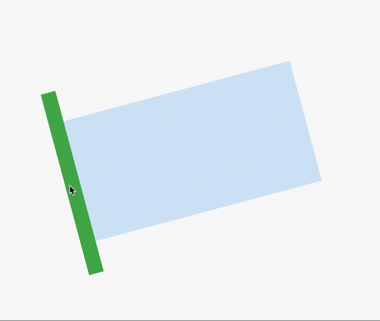 下面的gif图中,蓝色的container依然是不在overlay,绿色在。这一次我们对CompositedTransformTarget(即蓝色container)做了一个旋转的Transformation,如你所见,尽管CompositeTransformFollower位于overlay中,它依然感知得到“target”的位置和被施加的transformations。