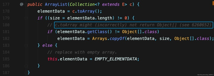 在笔者研究 JDK 源码时,注意到在CopyOnWriteArrayList 和ArrayList 的构造器中都出现了如下 bug 字样