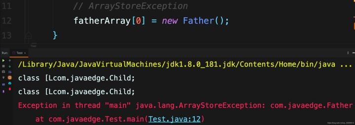 例如,下面的代码生成一个ArrayStoreException