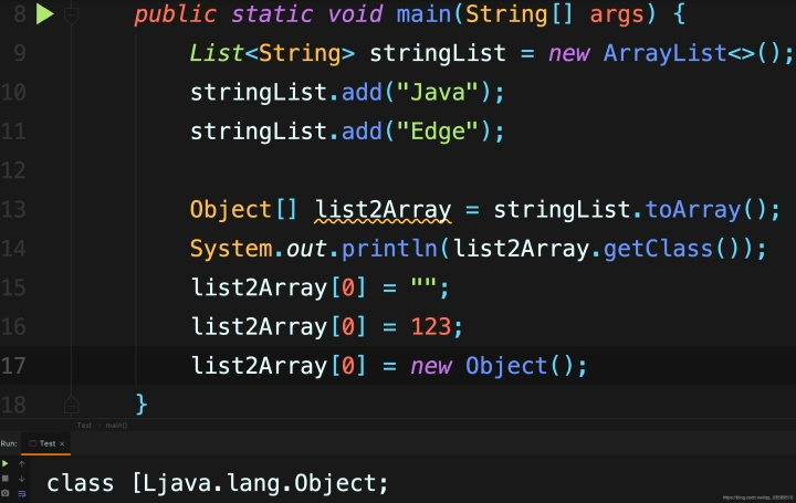 ArrayList的toArray()返回Object[]数组,所以可将任意对象存入 list2Array 数组。
