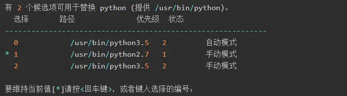 python 这个可执行命令实际是一个链接,指向了 /etc/alternatives/python 。而这个也是一个链接,指向了 /usr/bin/python2.7 ,这才是最终的可执行文件。alternatives 实际上是通过软链接的方式对版本进行管理。 语法: