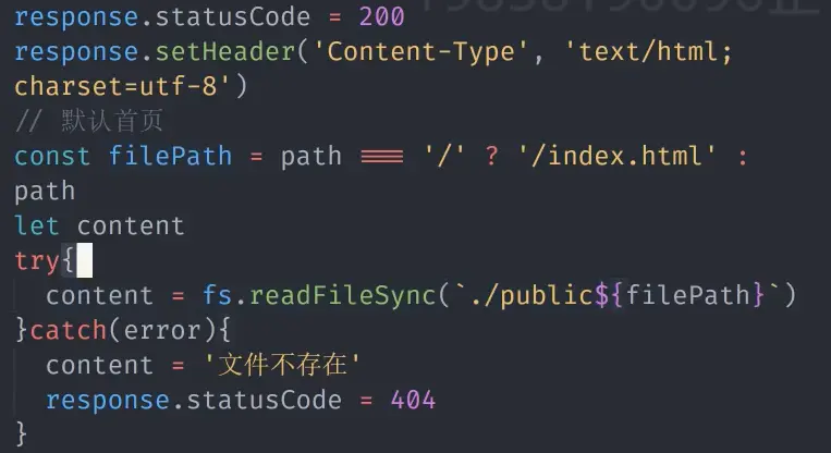 (1) 先去判断文件是否存在,如果存在,200,不存在 404。 这里有一个默认首页的做法,有浏览器会有这段代码,使得访问根目录的情况,直接是访问HTML文件。