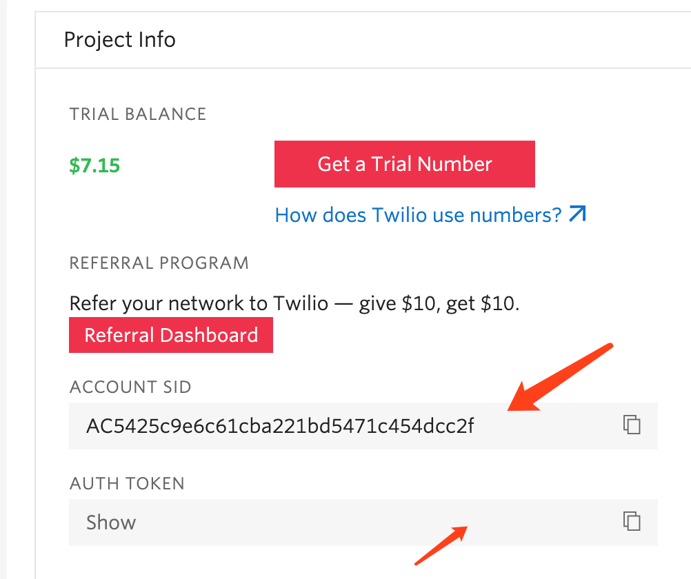 注册成功后,获取ACCOUNT SID和AUTH TOKEN,一会要用到