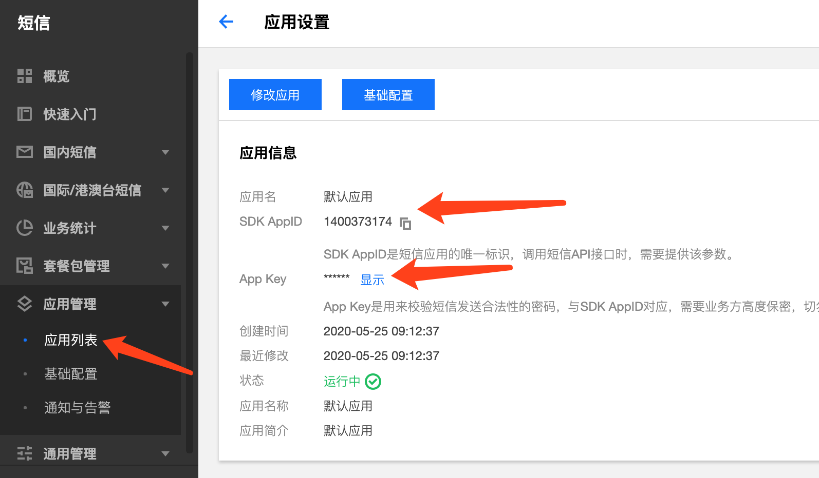注册成功后,腾讯云会自动生成一个短信应用,如果没有默认应用,需要新建一下
