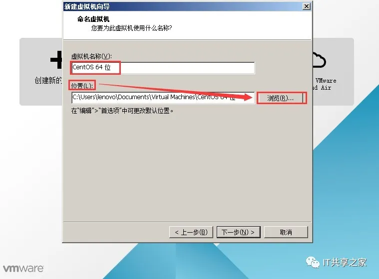 6、弹出虚拟机的名称和安装位置。