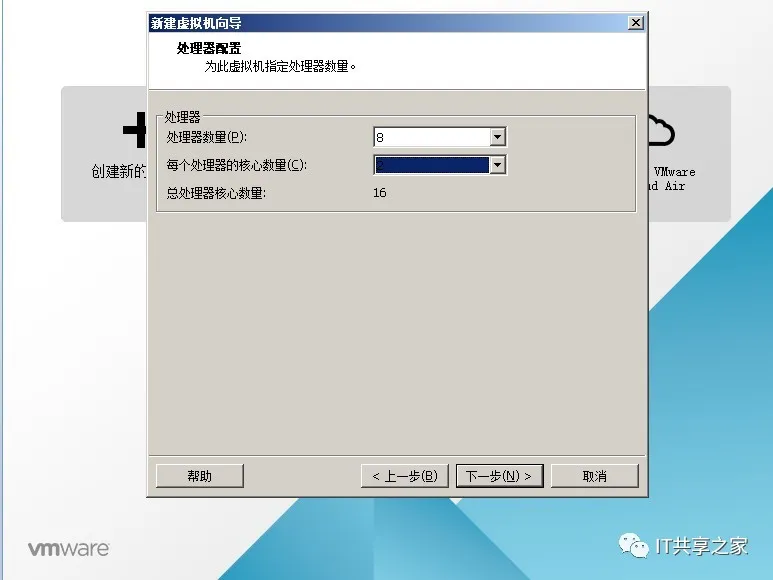 9、如果对处理要求较高,则需要按需进行分配。这里小编将配置给的比较高,因为后期有其他的用途,如下图所示。
