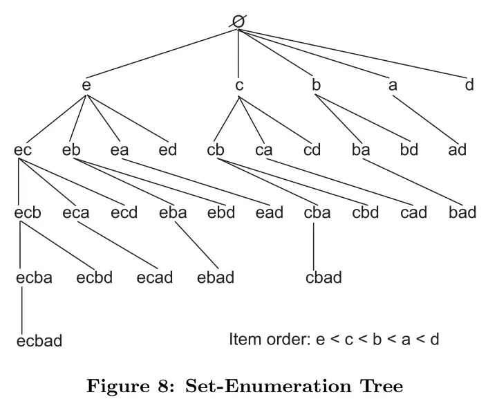 - 也不需要将项目集与相应的效用量列表绑定起来,因为集枚举树中某节点的所有子节点表示的项目集都具有相同的前缀项目集。