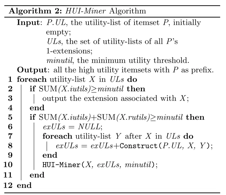 - 若该项目集对应效用列表所有iutils的总和大于阀值,则该项目集为高效用。