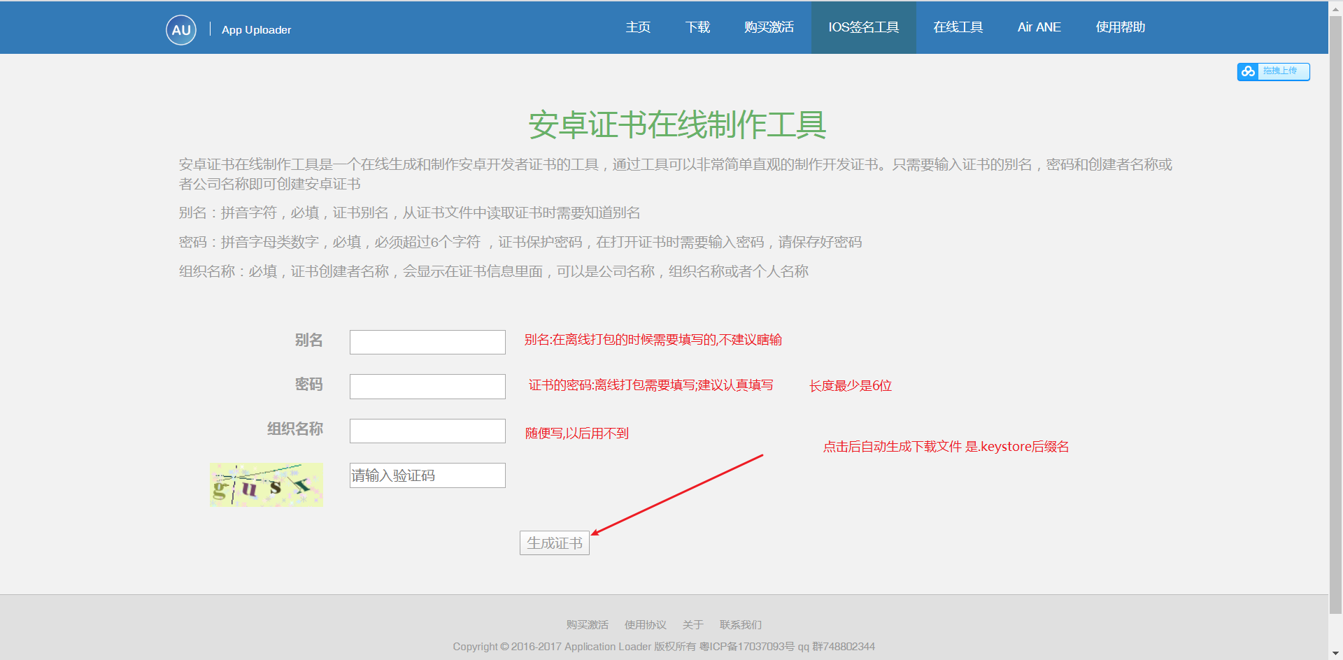 推荐用网上的安卓证书在线制作工具 www.applicationloader.net/appuploader…