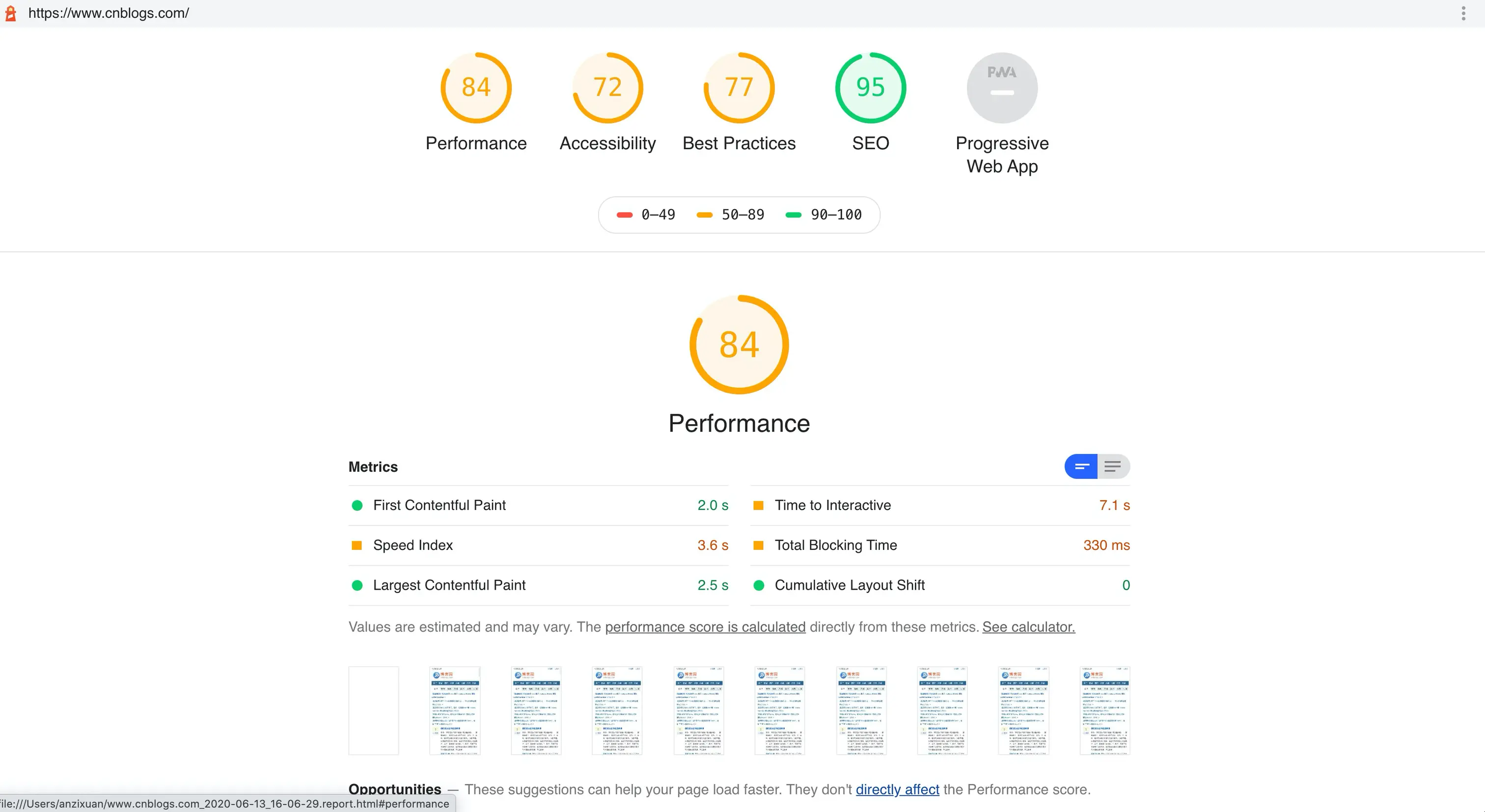 然后点击“Run audits”,之后就是等待生成评估界面。