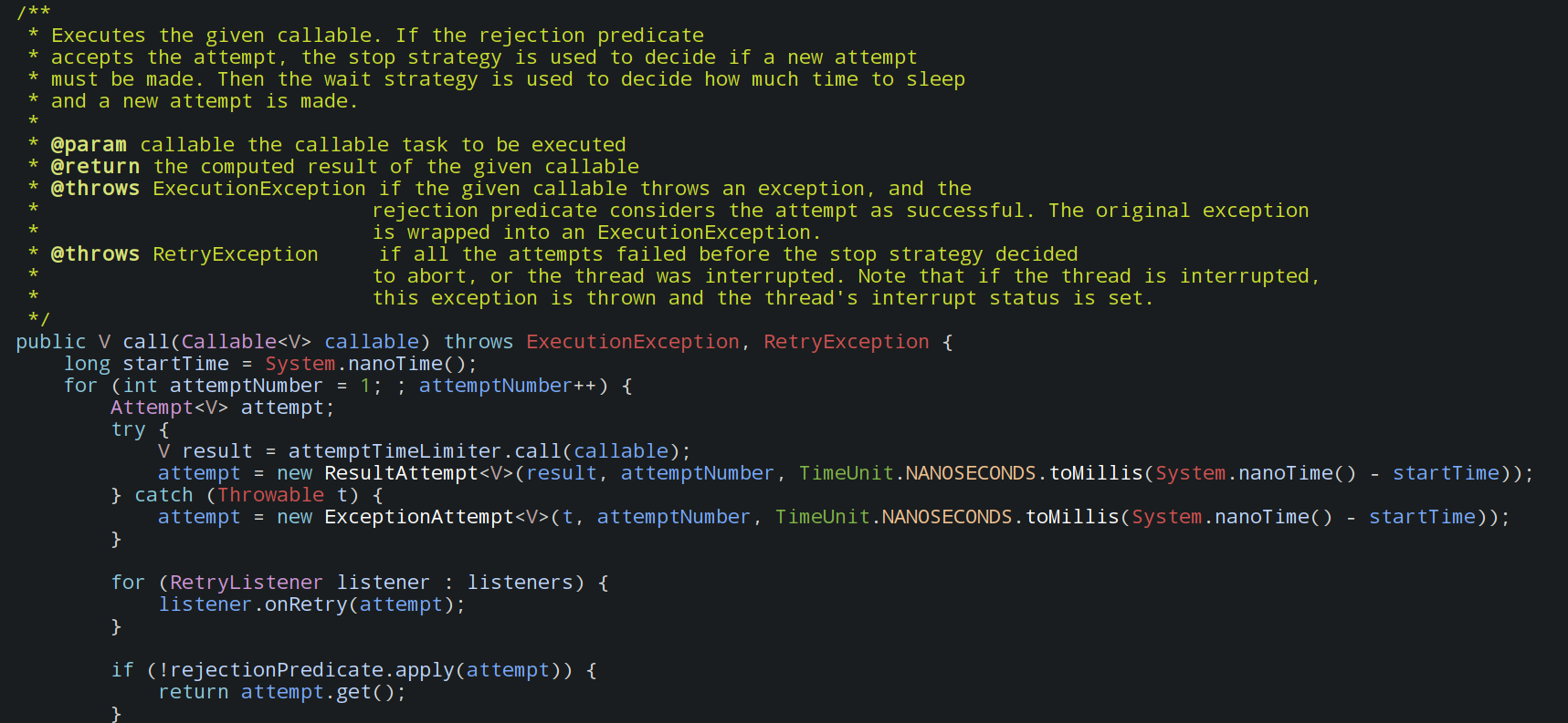 - 看了好多的资料,发现了一个开源的guavaretryer, 比较简单对用户非常的友好。