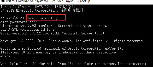 mysql -u root -p,再输入密码,出现如上所示即为运行成功。