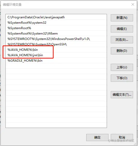 新建后直接把%JAVA_HOME%\bin和%JAVA_HOME%\jre\bin输入进去。