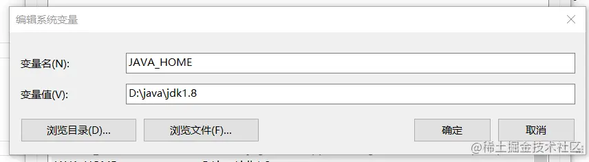 变量值:D:\java\jdk1.8(其中变量值为你的JDK安装目录)