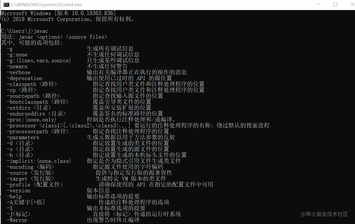 打开Dos窗口(快捷键:window+R) 输入javac,出现下图的界面就说明配置成功了。