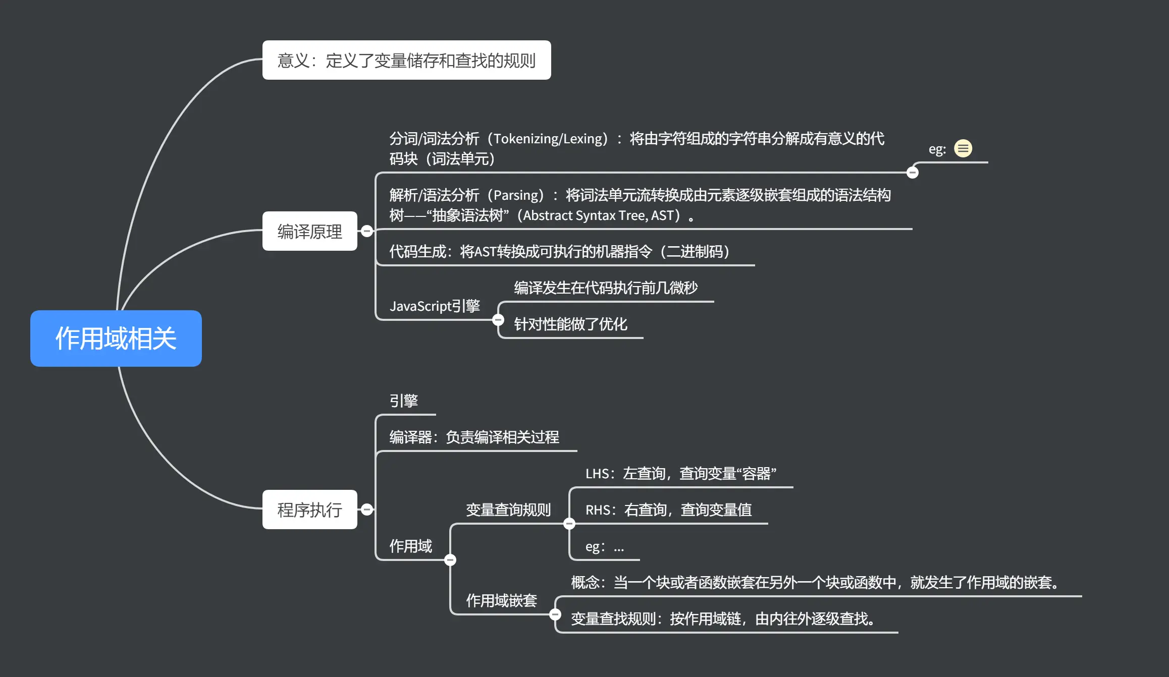 不管是编译阶段还是运行时, 都离不开 「引擎」, 「编译器」, 「作用域」.