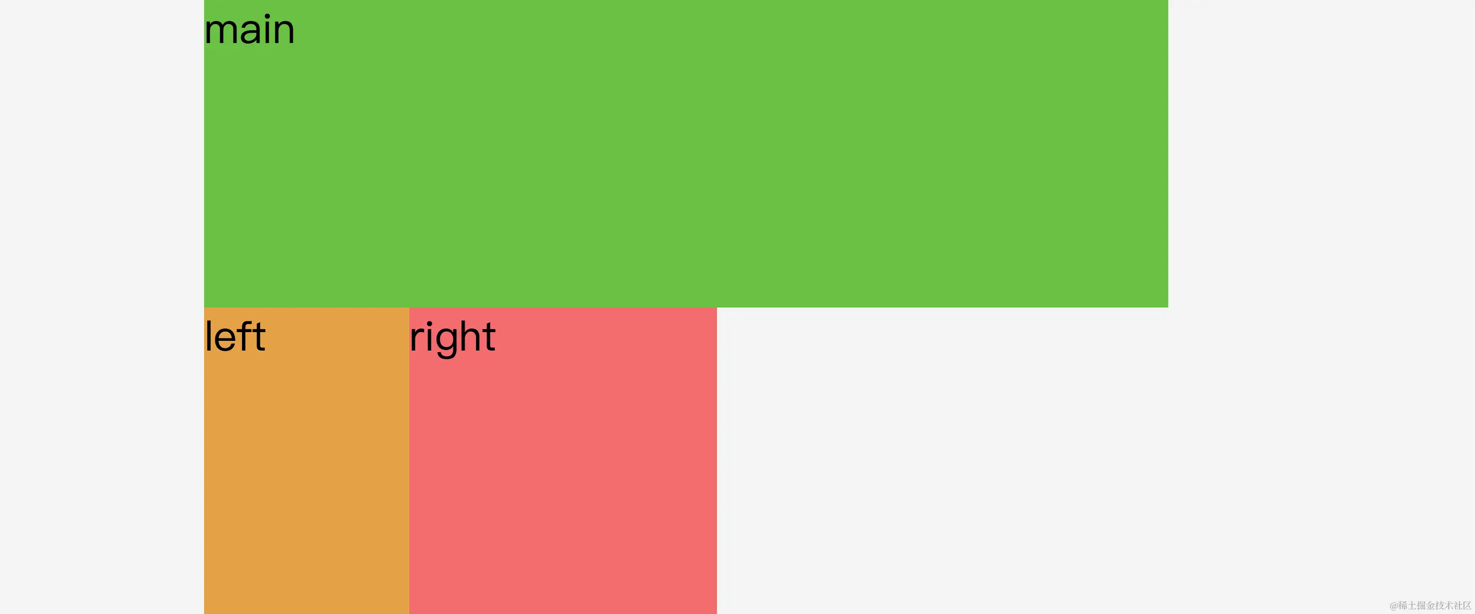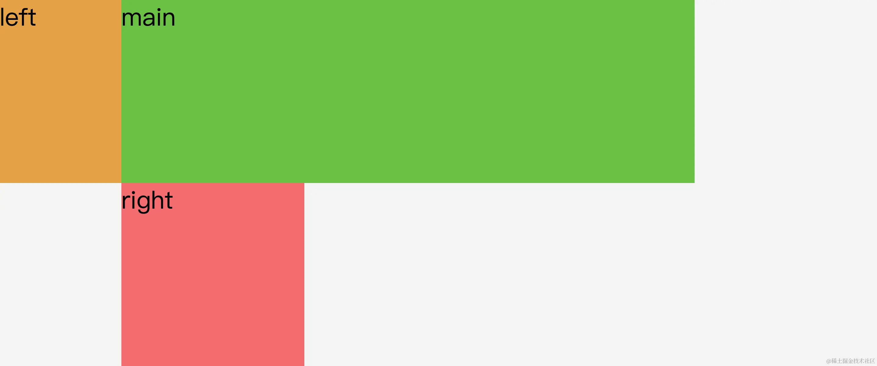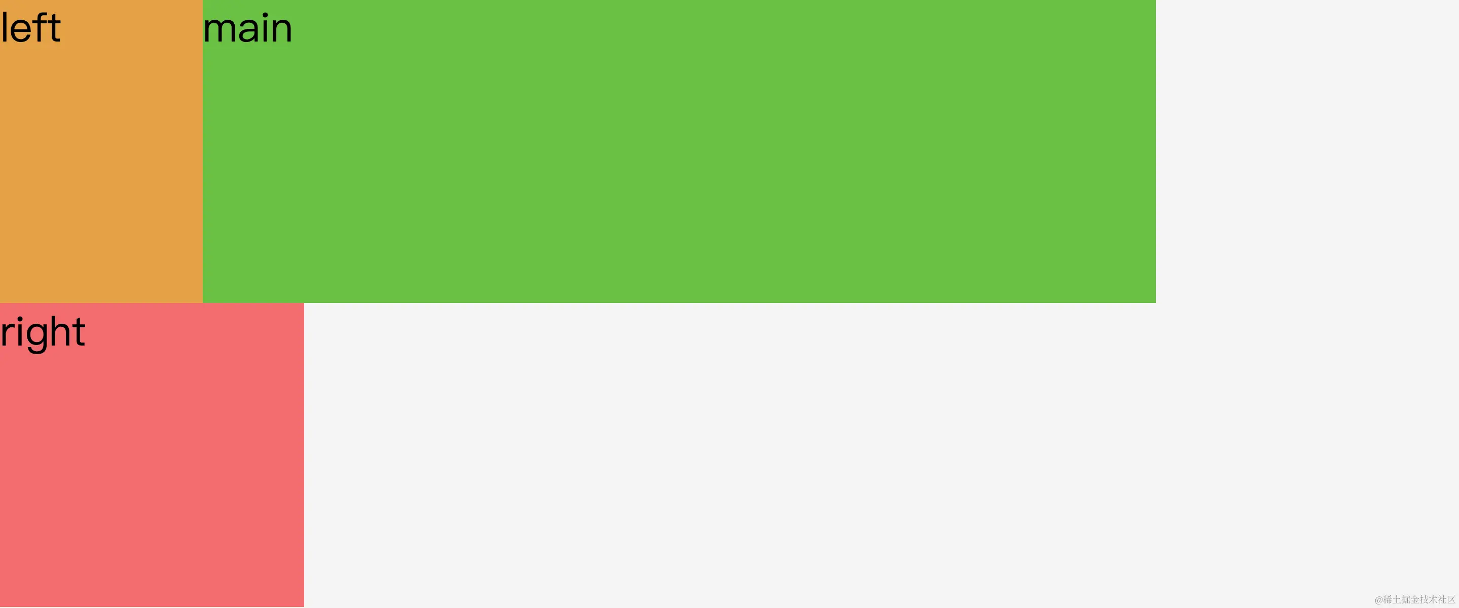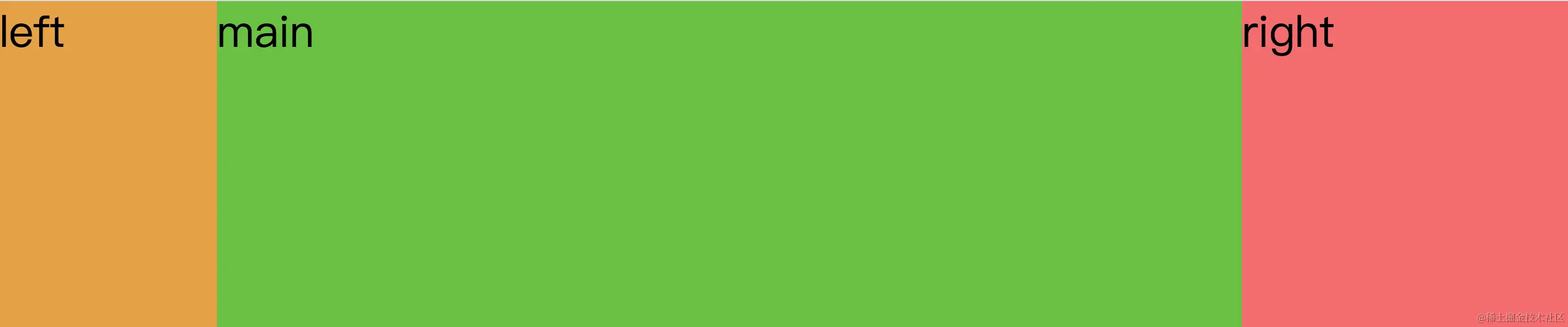 (1) 首先设置好.main、.left、.right的宽度并浮动,为左右两列预留出空间。