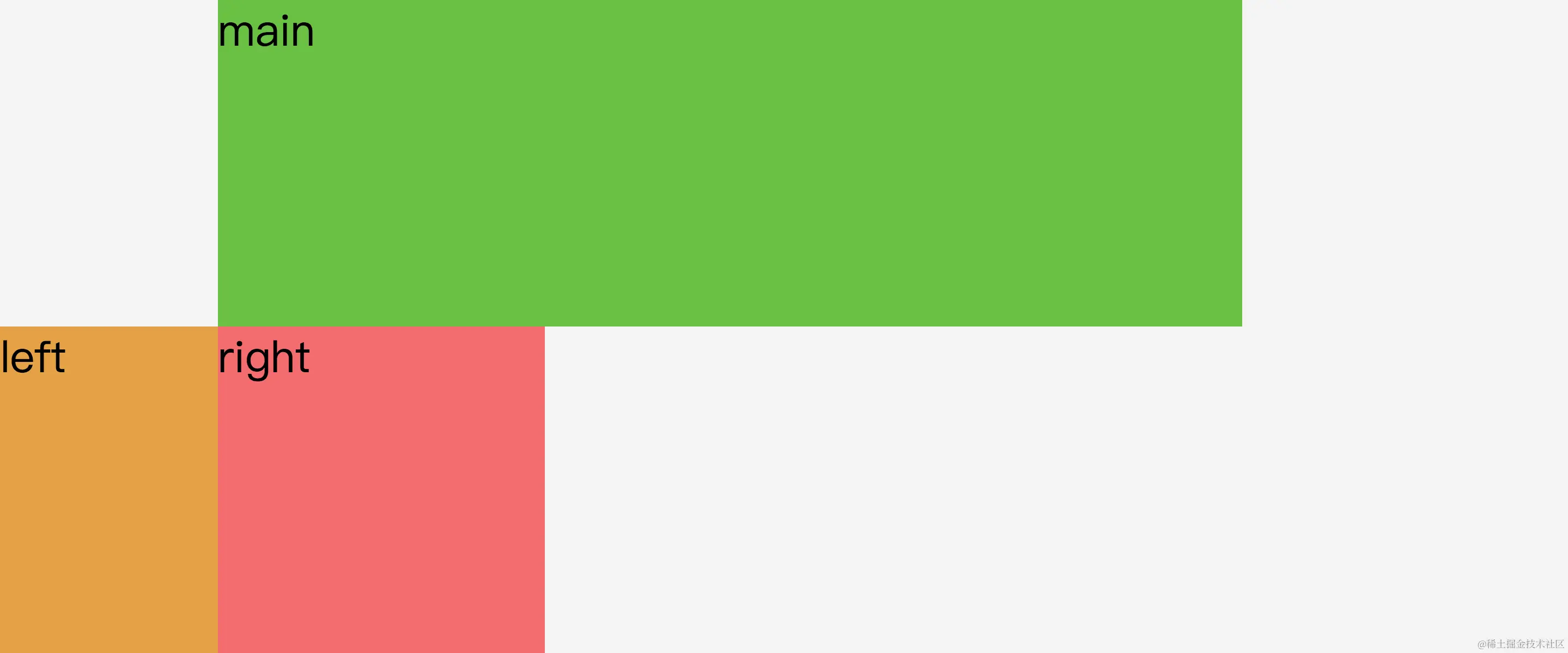 负margin、position把<div class="left">left</div>移动到左侧预留位置。